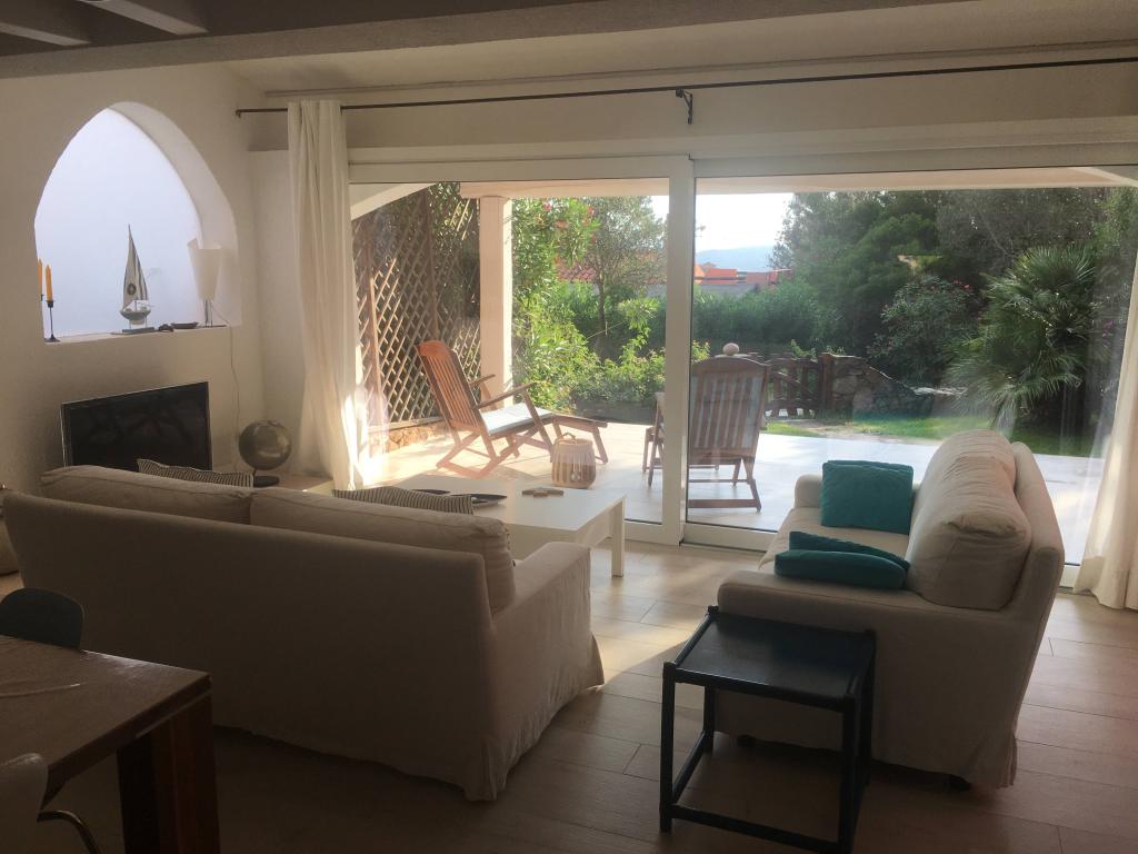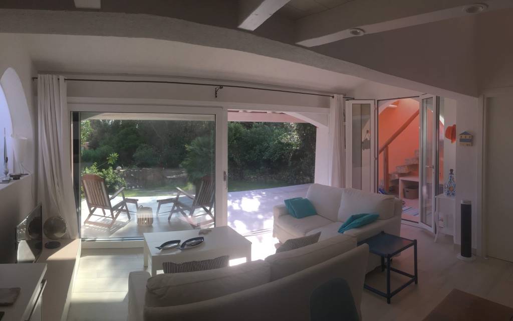La zona giorno si affaccia direttamente sul patio che precede il prato davanti a casa…